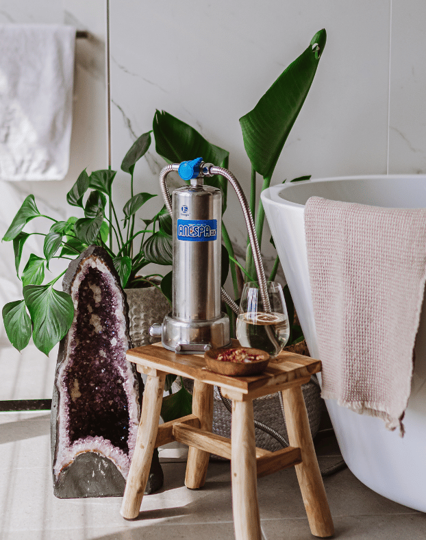 The exclusive ANESPA DX Home Spa System transforms your ordinary bathroom into a natural hot spring resort. ANESPA DX produces a continuous stream of healthy ionized mineral water.